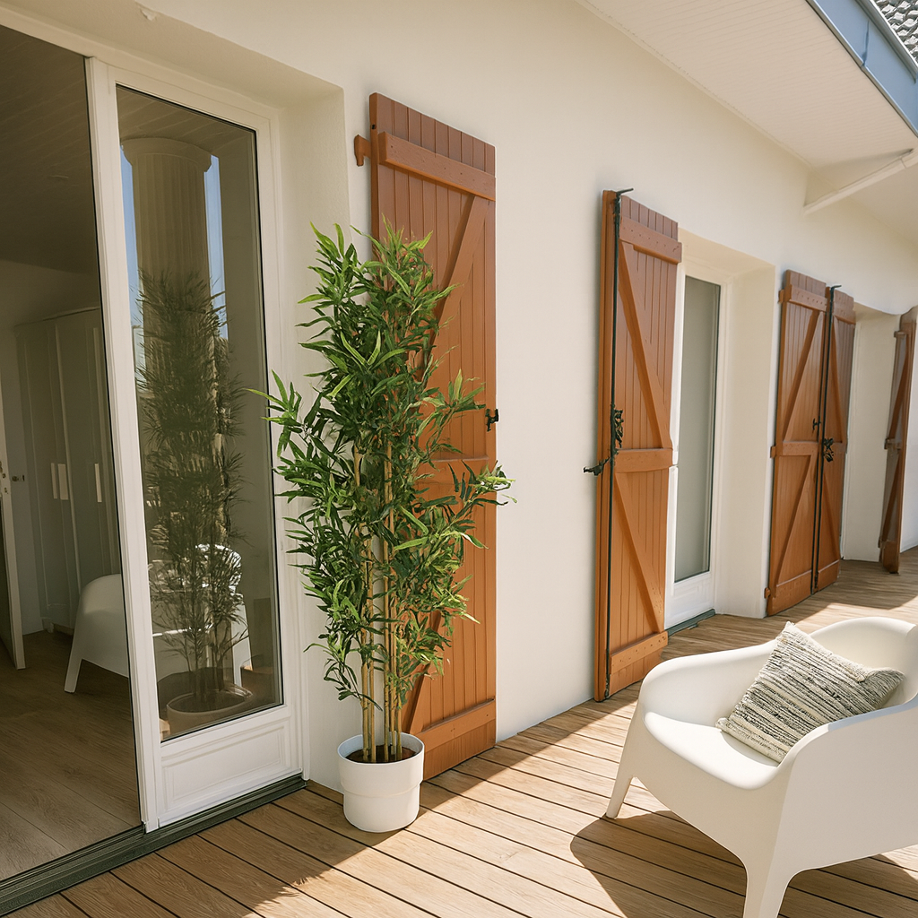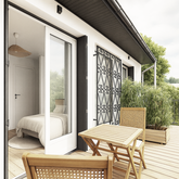 Valorisation des espaces verts et création d'une terrasse chaleureuse pour admirer le coucher du soleil.