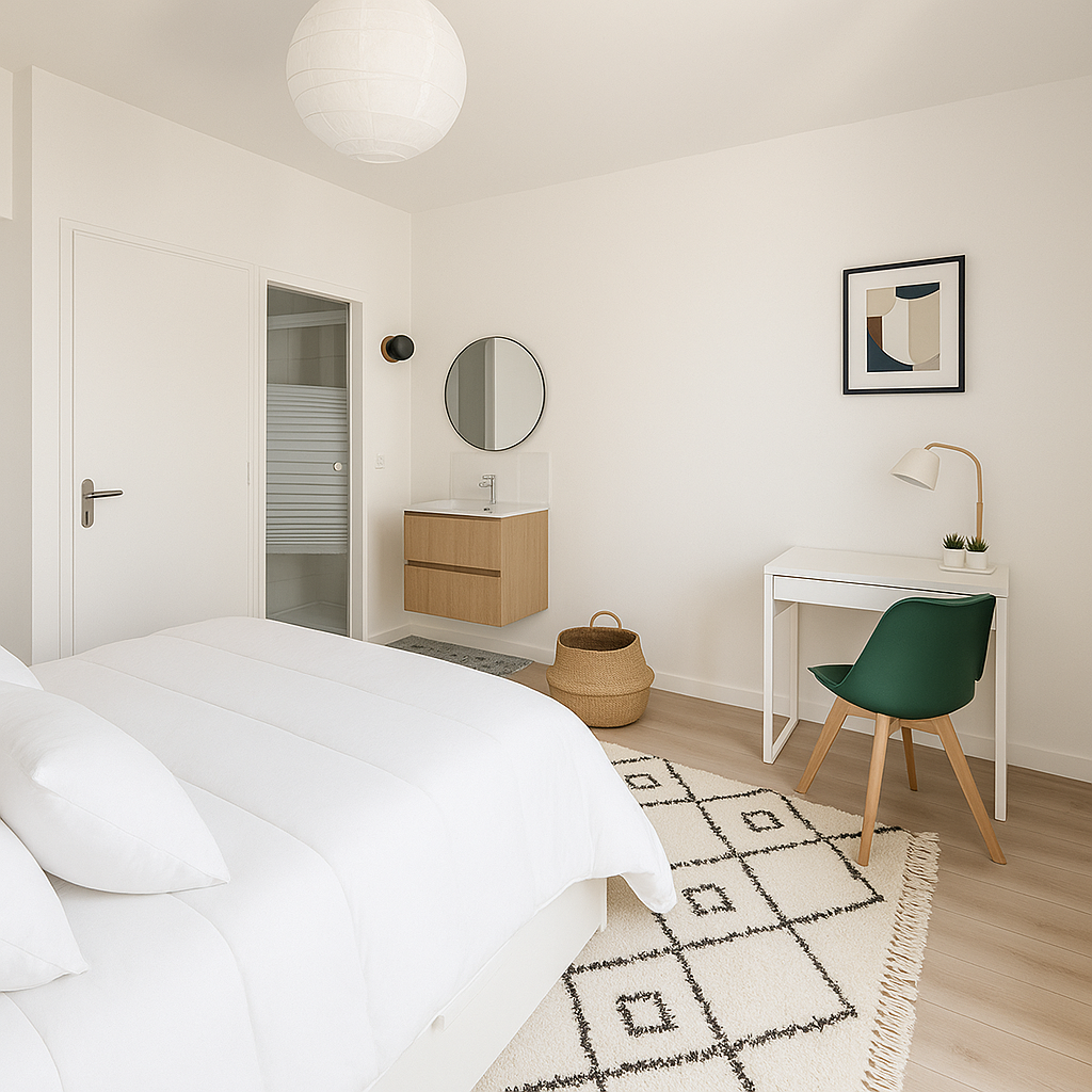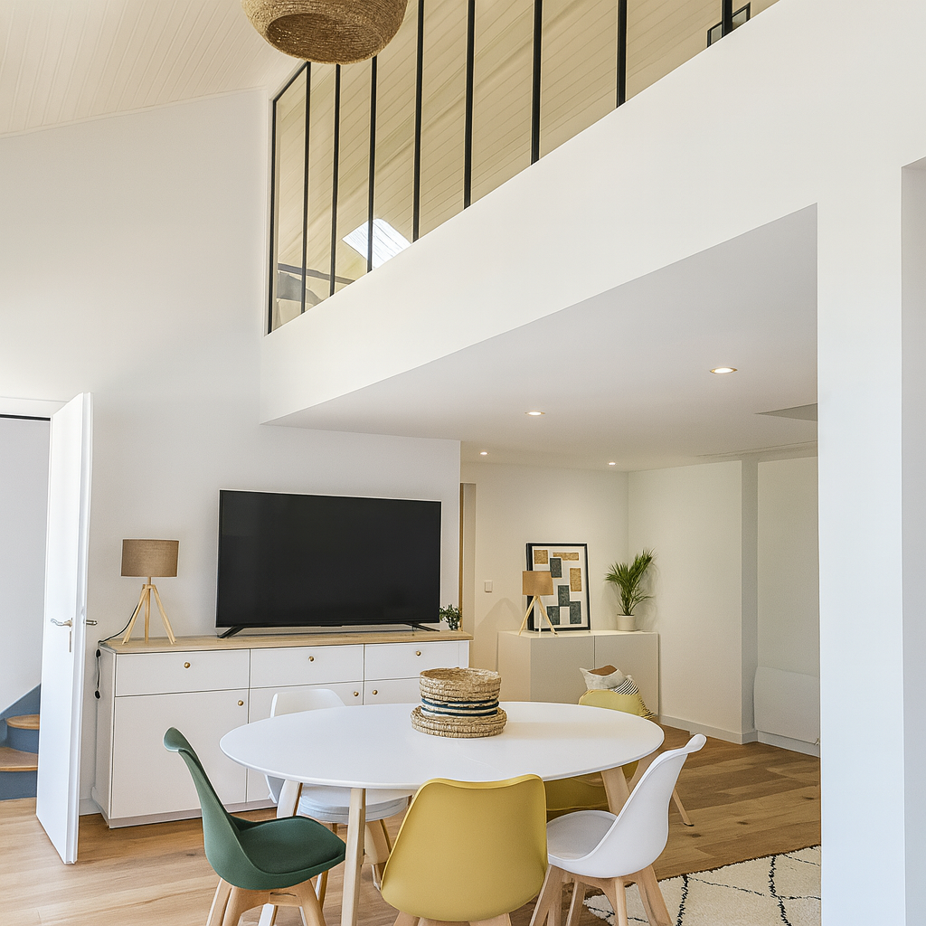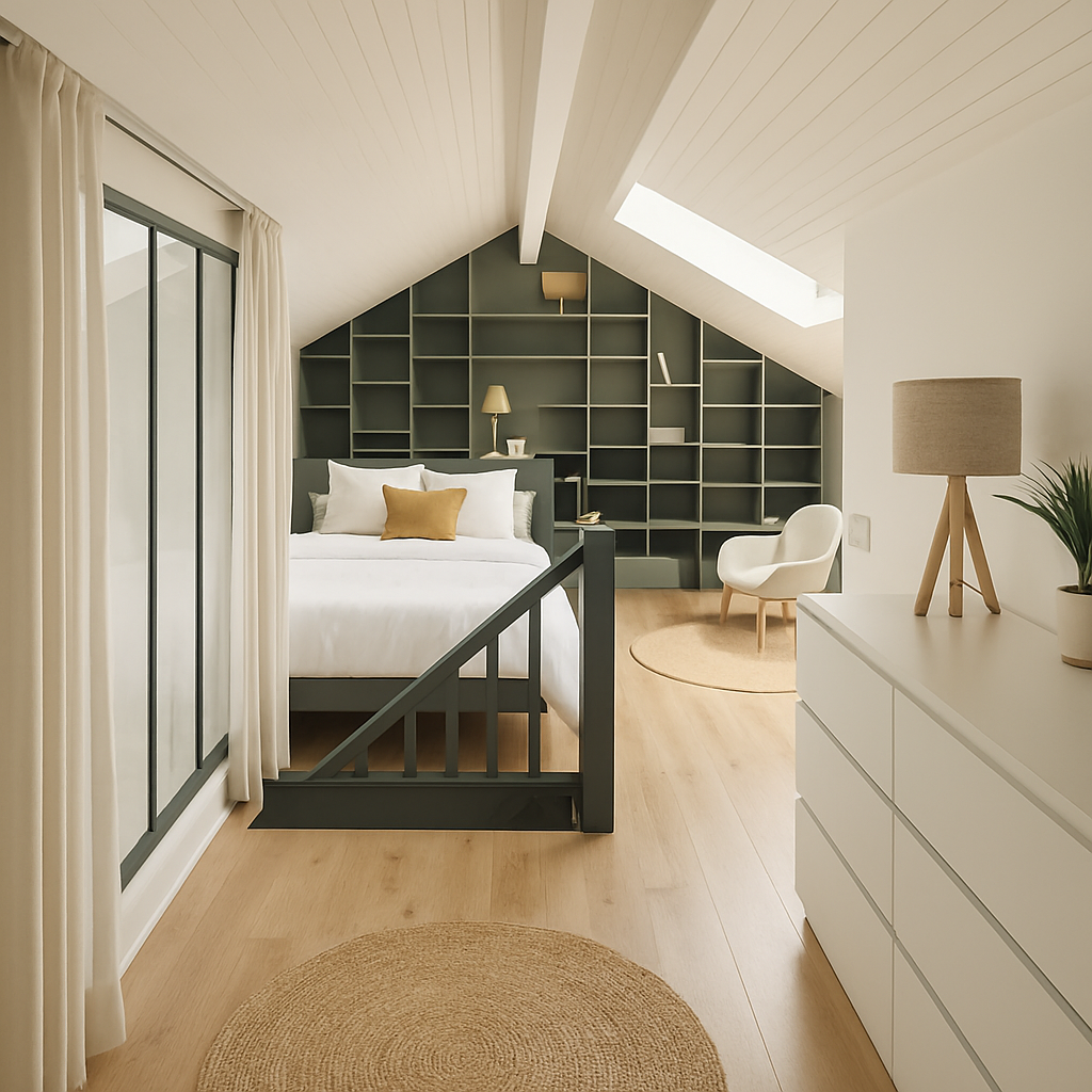 Rénovation et agrandissement de la mezzanine pour en faire une jolie suite parentale.