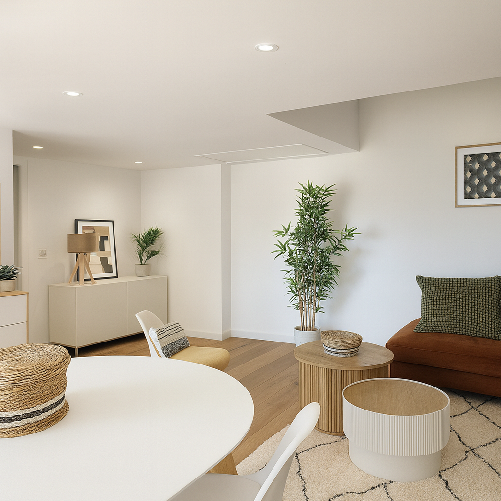 Aménagement de chambres, une grande pièce de vie chaleureuse.