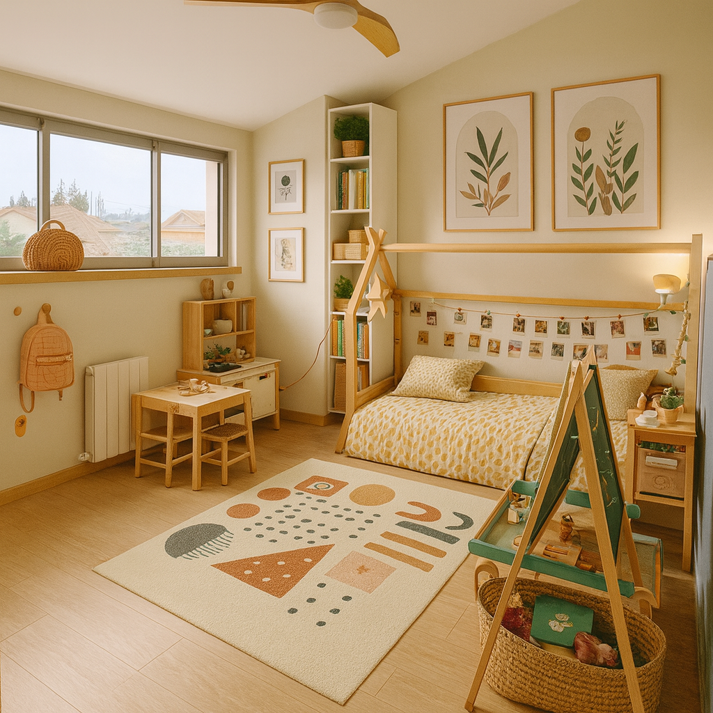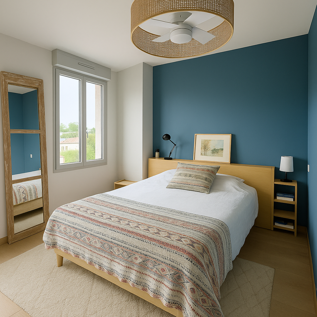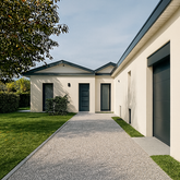 Au r+1, 2 chambres enfants, une grande salle de bain, et au r+2, la suite parentale dominant la vue par sa grande fenêtre aux lignes horizontales.